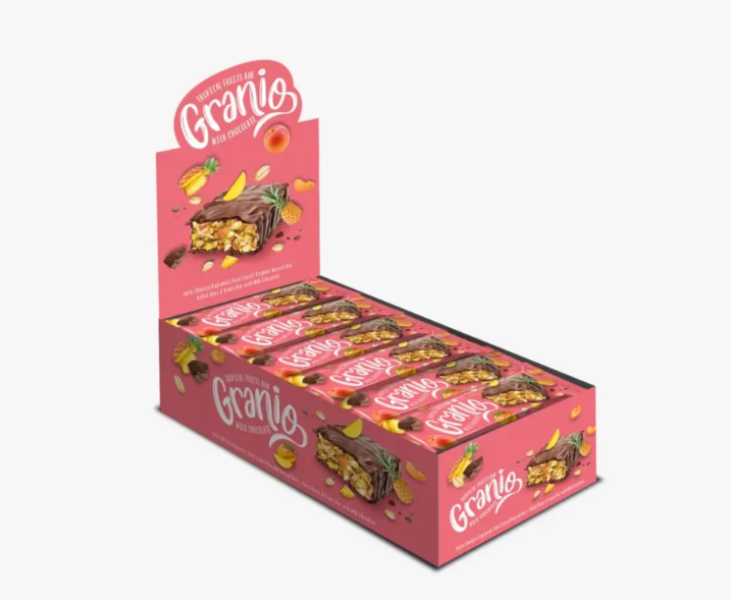 Granio Sütlü Çikolata Kaplamalı Tahıl Bar Tropikal Meyve 40 gr x 24 Adet