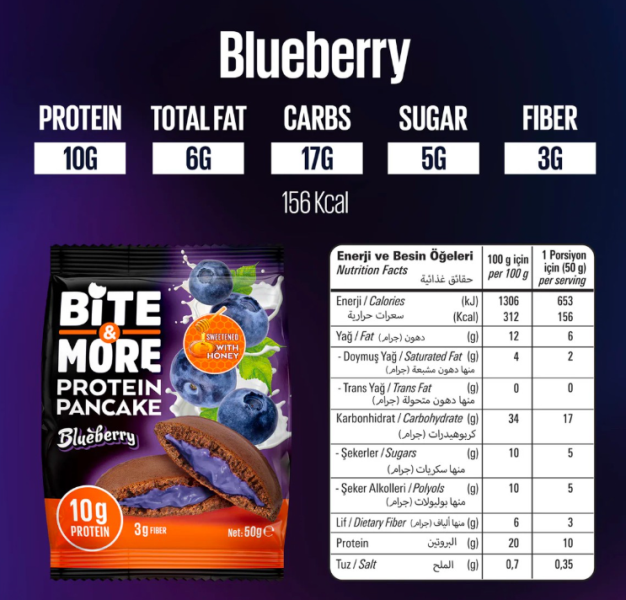 BİTE MORE PROTEİN PANCAKE Blueberry Cream (50 GR) - 12 ADET