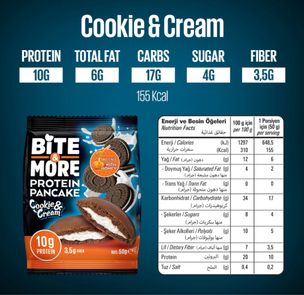 BİTE MORE PROTEİN PANCAKE Cookie Cream (50 GR) - 12 ADET