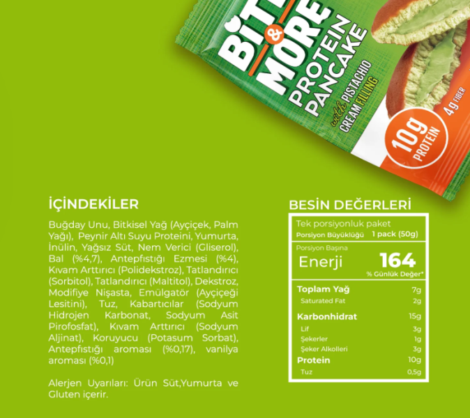 BİTE MORE PROTEİN PANCAKE Pistachio (50 GR) - 12 ADET