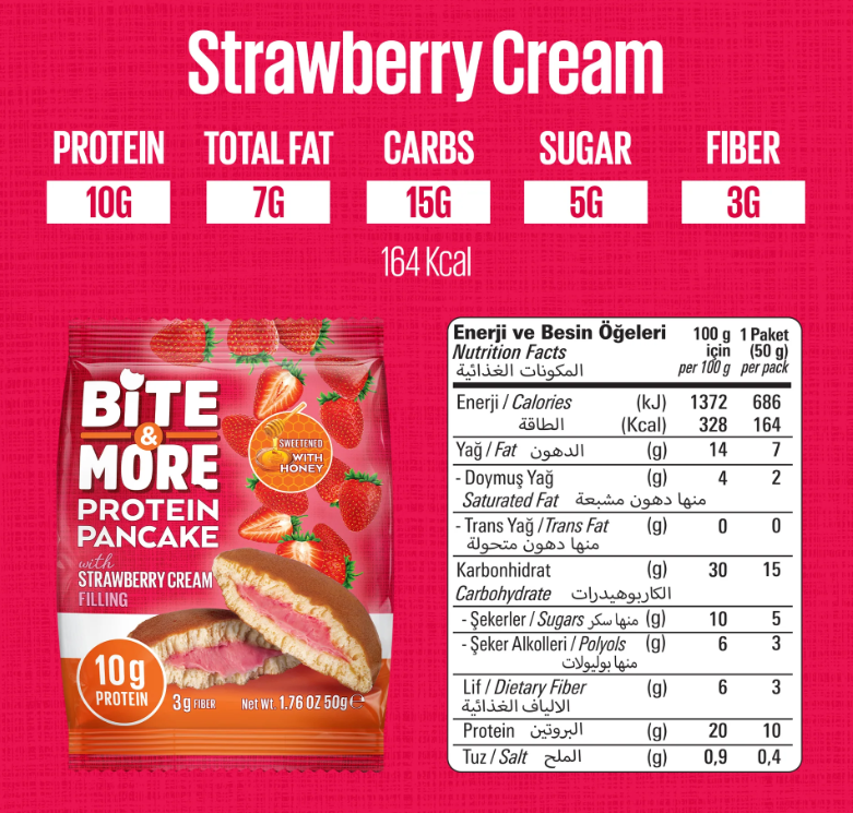 BİTE MORE PROTEİN PANCAKE Strawberry Cream (50 GR) - 12 ADET
