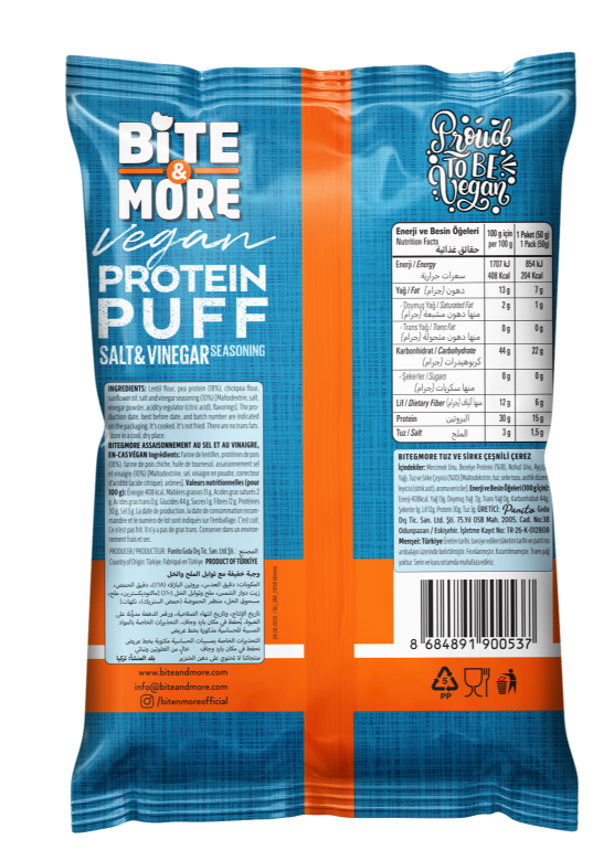 Bite More Tuz ve Sirkeli Vegan Protein Puff (50g)