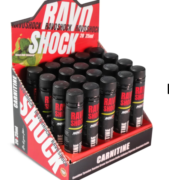 RAVO SHOCK; pratik shot formu, termojenik destek sağlayan bileşenleri ve enerji artırıcı içeriğiyle antrenman öncesi maksimum verim elde etmenize yardımcı olur. Mentol & orman meyveli ferah aromasıyla keyifli bir tüketim sağlar. Profesyonel sporcular için uygundur. Kafein miktarı: 840 mg/100 ml